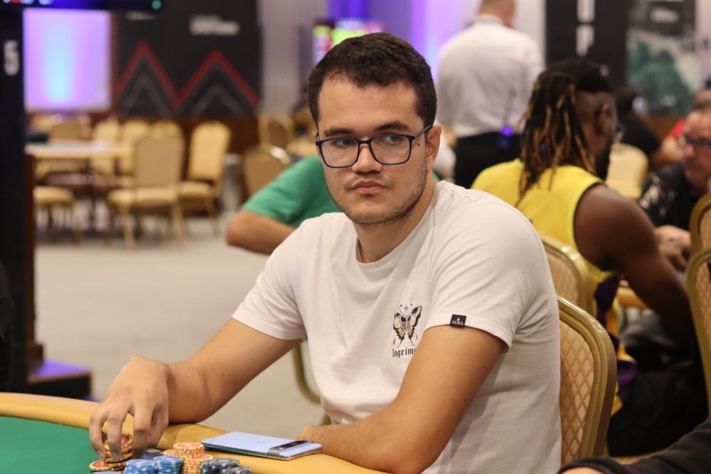 Com um dos menores stacks ainda em jogo, ele se envolveu em um confronto pré-flop contra Kaio Camargo, que possuía uma das maiores pilhas de fichas no momento.