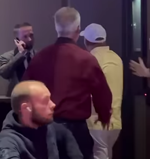 Um jogador trajando uma camia amarela e boné branco, ainda não identificado, discutiu de forma agressiva com um supervisor, que aparentemente estava ao telefone acionando a segurança do cassino.