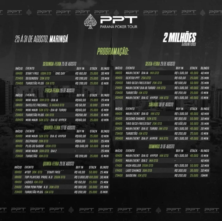 Com uma grade que soma R$ 2 milhões garantidos, o PPT já nasce com status de grande acontecimento no cenário do poker brasileiro.
